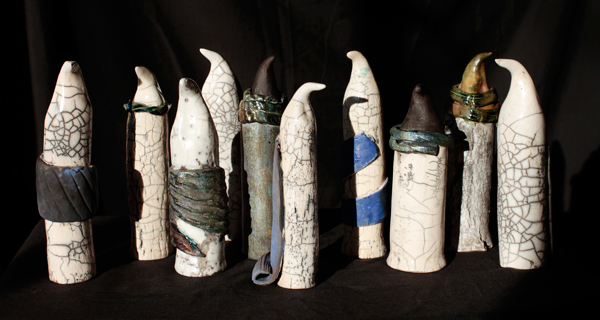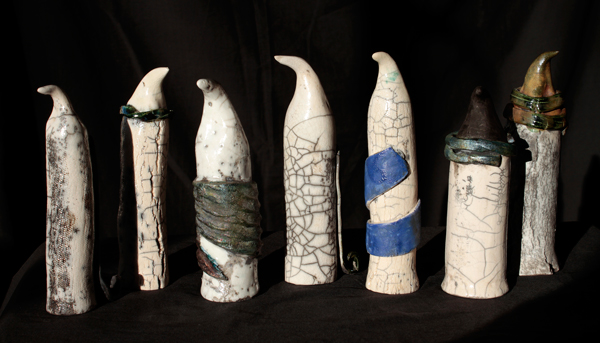 raku fired white clay 10-20cm high